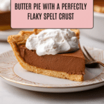Apple Butter Pie is a smooth, spiced custard pie featuring rich apple butter folded into a blend of cream, eggs, and warming spices. With a flaky spelt crust and a perfectly baked custard filling that is set but still slightly wobbly in the middle, this dessert is ideal for autumn or any time you crave a comforting, flavorful pie with traditional fall spices like cinnamon, nutmeg, and cloves.