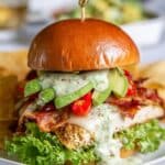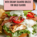 This Baja Chicken Sandwich features juicy, marinated chicken breasts with a zesty blend of lime, orange juice, and spices, topped with melted pepper jack cheese, crispy bacon, pico de gallo, avocado, and a creamy cilantro sauce. Served on toasted brioche buns, it’s a flavorful and satisfying southwestern-inspired meal perfect for lunch or dinner.