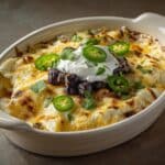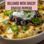 Baked Chile Rellenos is a classic Mexican-inspired dish featuring roasted Anaheim or Pasilla chiles stuffed with a flavorful blend of cheddar, Monterey Jack, and cotija cheeses, smothered in a savory tomato-based chili sauce, and baked until bubbly and golden. This easy oven-baked version delivers all the rich, melty cheese goodness without the mess of frying.