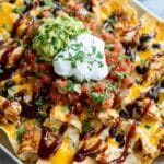 Keywords: BBQ chicken nachos, nachos recipe, easy appetizer, BBQ chicken recipe, cheesy nachos