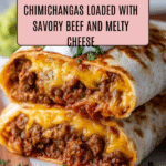 This Beef and Cheese Chimichangas recipe offers a crispy golden tortilla stuffed with seasoned ground beef, refried beans, and melted cheddar cheese. Enjoy the classic Tex-Mex flavor with the choice of frying for an extra crispy texture or baking for a lighter alternative. Perfect for family dinners, make-ahead meals, and freezer-friendly cooking, these chimichangas are a crowd-pleaser that brings restaurant-quality taste to your home kitchen.
