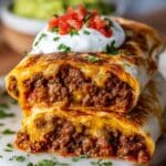 Keywords: Beef chimichangas, cheese chimichangas, Tex-Mex recipe, crispy chimichangas, ground beef recipe, baked chimichangas, fried chimichangas