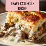 Biscuits and Gravy Casserole combines flaky biscuits, savory sausage, creamy gravy, and eggs in a comforting baked dish that’s perfect for a hearty breakfast or brunch.