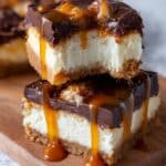 Keywords: Butterfinger Cheesecake Bars, Caramel Cheesecake, Candy Bar Dessert, No-Bake Cheesecake Bars with Baking Step, Easy Cheesecake Bars