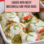 Keywords: Caprese Chicken, baked chicken, pesto chicken, Italian chicken recipe, mozzarella chicken, healthy chicken dinner
