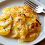 This classic Cheesy Scalloped Potatoes recipe features tender layers of thinly sliced russet potatoes and onions baked in a creamy, rich cheddar cheese sauce. Perfectly baked until bubbly and golden on top, this comforting side dish combines simple ingredients into a deliciously satisfying dish ideal for family dinners or holiday meals.