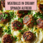 These Chicken Ricotta Meatballs with Spinach Alfredo are a comforting and creamy dish featuring tender baked chicken meatballs blended with creamy ricotta cheese. Served in a rich spinach Alfredo sauce, this recipe combines wholesome ingredients for a satisfying meal that’s perfect for a cozy dinner.