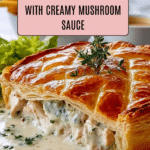 Keywords: Chicken Wellington, puff pastry chicken, baked chicken recipe, elegant chicken dish, mushroom sauce chicken