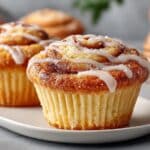 Delightfully soft and moist Cinnamon Roll Muffins infused with a sweet cinnamon swirl, perfect for breakfast or a comforting snack.
