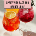 A refreshing and elegant Cranberry Spritz cocktail featuring tart cranberry juice, fresh orange juice, aromatic sage leaves, and sparkling white grape juice, perfect for a light and festive drink.
