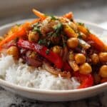 - This dish can be served with quinoa or noodles instead of rice for variety.