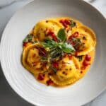 - Serve: Toss the cooked ravioli gently in melted butter with sage leaves or your preferred sauce. Plate the ravioli, garnish with extra grated parmesan, and serve immediately while warm.