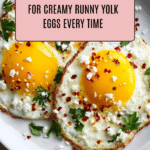 Cook the eggs over medium heat and watch closely as the whites set while the yolks remain soft. Avoid flipping the eggs, and remove them from the heat as soon as the whites are fully cooked.
