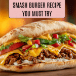 The Dubai Viral Paratha Smash Burger combines flaky, buttery paratha bread with juicy, flavorful smashed chicken patties. Topped with a spicy mayo and melted cheddar, this burger offers a unique twist that’s sure to impress at your next meal.