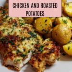 Keywords: garlic parmesan chicken, baked chicken and potatoes, easy chicken dinner, one-pan bake, garlic chicken recipe, Parmesan chicken, roasted potatoes