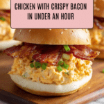 This Easy Instant Pot Crack Chicken recipe combines tender shredded chicken breast with creamy cream cheese, flavorful ranch seasoning, crispy bacon, and melted cheddar cheese. Perfectly cooked under pressure, the chicken is juicy and infused with rich flavors, then mixed with a cheesy sauce and topped with bacon for an irresistible sandwich filling. Ideal for quick weeknight meals or game day snacks.
