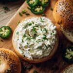 - Assemble the Bagels: Spread a generous amount of the jalapeño popper filling evenly over the cut sides of each bagel half.