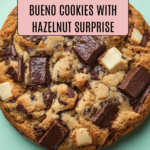 Indulge in these decadent Kinder Bueno Cookies made with a white chocolate hazelnut spread center and chunks of Kinder bars. Soft, chewy, and loaded with rich, nutty chocolate flavor, these cookies are perfect for chocolate lovers craving a gourmet treat at home.