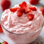 A light and creamy pink fluff dessert featuring strawberry gelatin, smooth cottage cheese, Cool Whip, fresh strawberries, and crushed pineapple. This refreshing, no-bake treat can be customized with optional mini marshmallows or nuts, making it perfect for gatherings or a simple sweet indulgence.