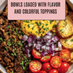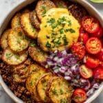 These Loaded Fiesta Potato Bowls are a vibrant, flavorful meal perfect for any night of the week. Crispy roasted potatoes serve as a hearty base, topped with savory seasoned beef or black beans and fresh, zesty toppings for a festive finish.
