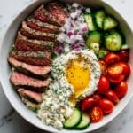 This Mediterranean Steak Bowl is a fresh and satisfying meal that combines tender marinated steak with vibrant vegetables and creamy tzatziki sauce. It’s perfect for a wholesome lunch or dinner, offering bright flavors and a balanced mix of protein and grains.