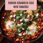 Menemen is a flavorful Turkish scrambled egg dish cooked with tomatoes, peppers, and spices. It’s a comforting and vibrant breakfast or light meal that’s quick to prepare and perfect for sharing with crusty bread.