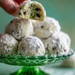 Delight in the refreshing twist of Mint Chocolate Chip Snowball Cookies, featuring a buttery, tender crumb infused with mint extract and studded with mini chocolate chips. These festive green cookies are rolled in powdered sugar for a snowy finish, perfect for holiday gatherings or a sweet treat any time of year.