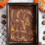 Keywords: Peanut butter cup brownies, chocolate brownies, peanut butter brownies, fudgy brownies, baked dessert