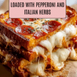This Pizza Grilled Cheese recipe combines the comforting gooeyness of a classic grilled cheese sandwich with the bold, savory flavors of a pepperoni pizza. Using a skillet to toast buttery, seasoned bread layered with marinara sauce, mozzarella, Parmesan, and pepperoni, this quick and easy meal is perfect for lunch or dinner and offers a delightful twist on two favorites.