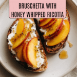 Keywords: peach bruschetta, whipped ricotta, summer appetizer, easy bruschetta, Italian appetizer, peach recipe