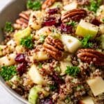 A refreshing and nutritious Quinoa Apple Salad combining fluffy cooked quinoa, crisp apples, crunchy nuts, and sweet dried fruit, all tossed in a light vinaigrette. Perfect as a light lunch or side dish, this salad offers a delightful balance of flavors and textures with minimal preparation.