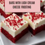 Deliciously rich and moist Red Velvet Cookie Bars with a smooth cream cheese frosting, perfect for dessert or a special treat. These bars combine classic red velvet flavors with the convenience of cookie bars, baked to perfection and topped with a velvety cream cheese frosting.