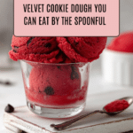 Keywords: Red velvet edible cookie dough, no-bake cookie dough, safe to eat raw cookie dough, chocolate chip cookie dough, red velvet dessert