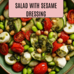 Keywords: edamame salad, sesame dressing, healthy salad, vegetarian, Asian salad, fresh vegetables