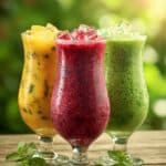 - Serve: Pour the drink into glasses and serve immediately chilled, garnished with extra fruit slices or herbs if desired.