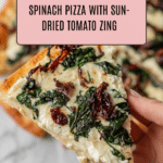 Keywords: spinach pizza, white sauce pizza, vegetarian pizza, sun-dried tomato pizza, easy pizza recipe