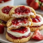 Delight in these Strawberry Cheesecake Cookies featuring a soft, buttery dough infused with freeze-dried strawberry powder and a luscious, creamy full-fat cheesecake filling. Perfectly baked to tender edges with a sweet and tangy center, these cookies make an elegant treat for any occasion.