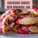 These Strawberry Cheesecake Cookies combine creamy cheesecake filling, sweet strawberry jam pockets, and buttery sugar-coated dough for a delightful treat. Soft and chewy with bursts of fruity flavor, these cookies are perfect for celebrations or anytime you crave a delicious, homemade dessert.