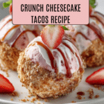 Strawberry Crunch Cheesecake Tacos are a fun and delicious twist on traditional desserts. Combining creamy cheesecake filling with fresh strawberries inside a crunchy taco shell, this treat is perfect for parties or a quick sweet snack.