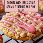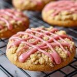 Strawberry Crunch Cookies are delightful buttery cookies topped with a crunchy mixture of crushed freeze-dried strawberries and vanilla wafer cookies, finished with a sweet pink glaze drizzle. These cookies offer a perfect balance of soft texture and fruity crunch, ideal for any occasion or sweet treat craving.