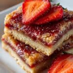 Delicious and wholesome Strawberry Oatmeal Bars featuring a buttery oat crust and topping with a sweet and tangy strawberry filling. These bars offer a perfect balance of chewy oats and fresh fruit, making them an excellent snack or breakfast treat.