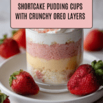 Strawberry Shortcake Pudding Cups are a quick and delightful twist on the classic dessert. Layers of creamy cheesecake pudding, crushed vanilla Oreos, and fresh strawberries come together in individual servings perfect for any occasion.