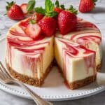 This Strawberry Swirl Cheesecake offers a creamy, dreamy texture combined with a vibrant, fresh strawberry sauce swirled throughout. A buttery graham cracker crust forms the perfect base for the rich cream cheese filling, enhanced by a homemade strawberry sauce that adds both sweetness and a pop of color. Perfect for special occasions or any time you crave a luscious dessert with a fruity twist.