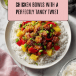 This Teriyaki Pineapple Chicken Bowls recipe features juicy, tender chicken thighs coated in a flavorful homemade teriyaki sauce with a delightful sweetness from pineapple and honey. Served over fluffy cooked rice and complemented by sautéed bell peppers, onions, and edamame, this dish is a perfect balance of savory and sweet with a tropical twist. Ready in 40 minutes, it’s a delicious and satisfying weeknight meal.