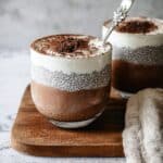 This Tiramisu Chia Pudding with Greek Yogurt is a creamy, protein-packed dessert that perfectly mimics the flavors of classic tiramisu while being healthy and satisfying. Made with chia seeds, Greek yogurt, instant espresso powder, and maple syrup, it’s a no-bake, chilled pudding that layers a smooth espresso-infused base with a sweet vanilla topping and a dusting of cocoa powder for the perfect coffeehouse treat at home.