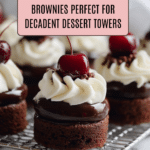 - Assemble the Dessert: Once the brownies are cooled, cut them into rounds or squares. Top each piece with a generous dollop of baker’s dulce de leche, pipe a swirl of whipped cream on top, and finish with a cherry for a festive touch.