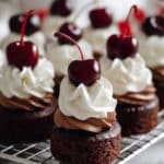 - Assemble the Dessert: Once the brownies are cooled, cut them into rounds or squares. Top each piece with a generous dollop of baker’s dulce de leche, pipe a swirl of whipped cream on top, and finish with a cherry for a festive touch.