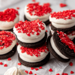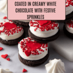 Celebrate Valentine’s Day with these delightful Oreos dipped in creamy white chocolate and decorated with festive red heart sprinkles. This simple and fun recipe transforms classic Oreos into a charming treat perfect for gifting or sharing with loved ones.