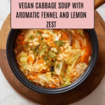 This wholesome Vegan Cabbage Soup is a quick and easy recipe that features a flavorful vegetable broth infused with garlic, tomatoes, and coriander. Packed with nutritious ingredients like cabbage, fennel, and cannellini beans, it offers a comforting and hearty meal perfect for busy weeknights. The addition of fennel fronds and lemon zest adds a fresh, aromatic finish to this healthy, fiber-rich, and vegan-friendly soup.