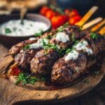 Keywords: vegan kebabs, tempeh kebabs, plant-based kebabs, vegan flatbread, easy vegan dinner, smoky tempeh kebabs